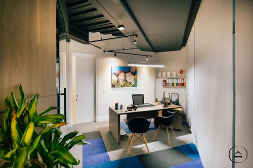 El diseño de las oficinas es una abstracción del logo de la compañía, FH fue la inspiración para estructurar su diseño, zonificación y funcionalidad. Obteniendo como resultado un espacio armónico, colorido y generoso, palabras que representan los valores de FH Constructores.