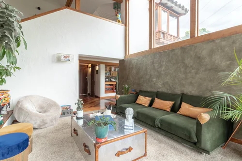 Un Townhouse enclavado en los cerros occidentales de Bogotá - Colombia, nos expone la atemporalidad de una arquitectura colonial, la conjugación de listones de madera, contrastando con sus muros estampados con pañete rústico nos reto a conservar un leguaje, destacando espacios para solucionar funciones que hoy son imperativas.